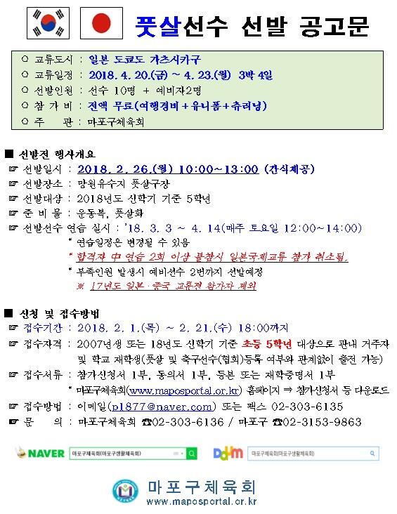 [선발공고]2018 일본 도쿄도 가츠시카구 국제유소년 풋살친선교류전 선수선발