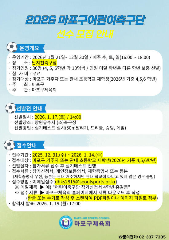2026 마포구어린이축구단 선수 모집 선발전