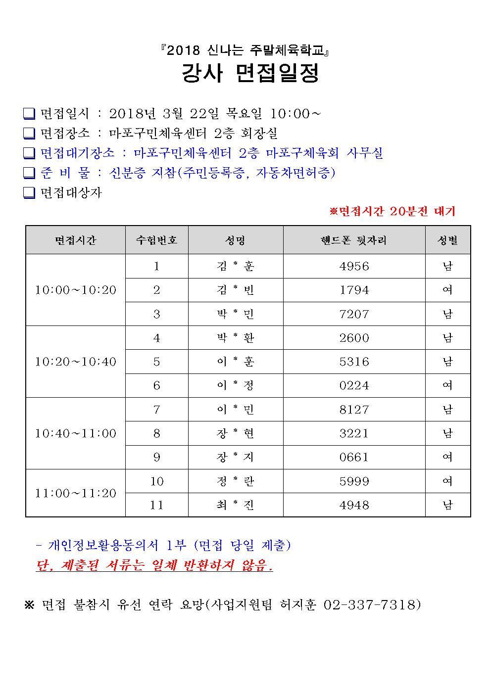 2018 신나는 주말체육학교 강사 면접일정 안내