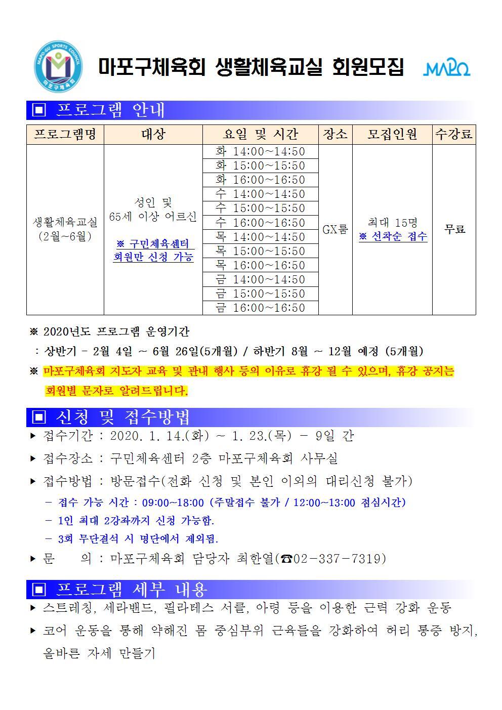 생활체육교실 회원모집 안내