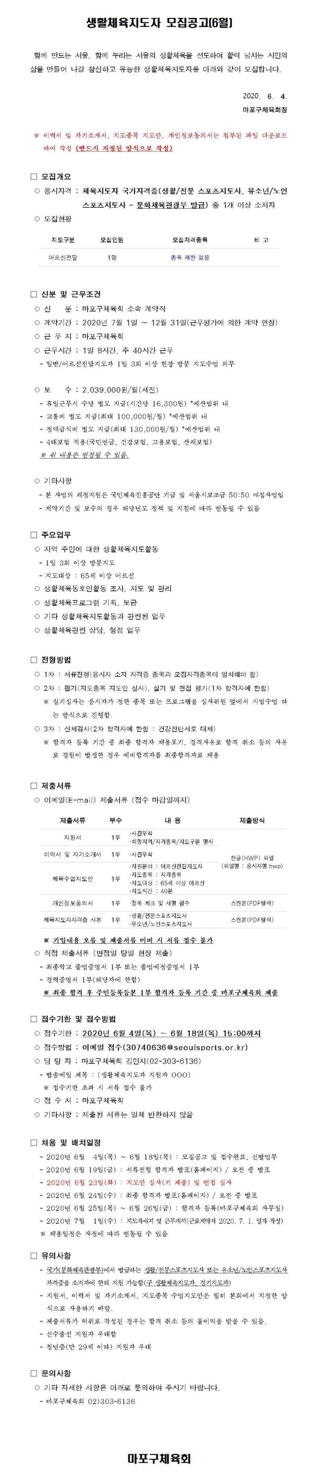 2020 생활체육지도자 모집공고(6월)